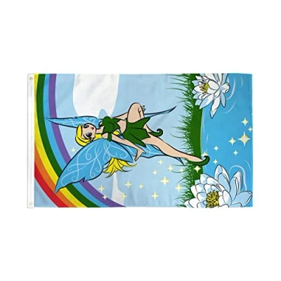 AZ Flag Fairy Rainbow Green 3x5 Ft 100D Polyester Lgbt Banner with Two Metal Grommets Fade Resistant Vivid Colors 3' x 5' Feet 150x90 Cm