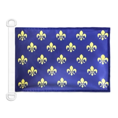 QUALITY MATERIAL: Made of 100% Knitted polyester 110g fabric, the finish of this France Blue and Gold Fleur-de-Lis nautical flag is made with multiple reinforcement seams. Satisfaction guaranteed ULTRA RESISTANT: For outdoor or nautical use, this colorful French Royal flag is resistant to wind, water, heat and abrasion. Choose a durable flag EASY TO ATTACH: Our France Blue and Gold Fleur-de-Lis flag is easily attached thanks to two plastic rings integrated on the reinforcement band. Many hanging possibilities are available to you WEAR YOUR COLORS PROUDLY: The 18 x 12 Inches Flag of France Blue and Gold Fleur-de-Lis is a key element in the celebration of cultural and sporting events YOUR FLAGS REFERENCE: AZ FLAG is a brand specialized from 2009 in the production and distribution of flags from all over the world. Choose a brand that stands for quality