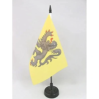 AZ Flag French Province of Flanders and Hainaut Table 5'' x 8'' County Montbéliard Office Decoration 100% Polyester 21 14 cm Mini Desk with Pole Black Plastic Base