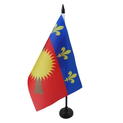 AZ Flag Guadeloupe Table 5'' x 8'' French region of Office Decoration 100% Polyester 21 14 cm Mini Desk with Pole and Black Plastic Base