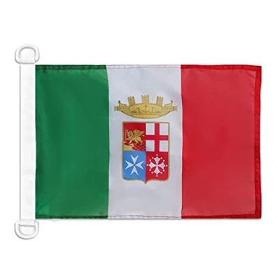 QUALITY MATERIAL: Made of 100% Knitted polyester 110g fabric, the finish of this Italy Naval Ensign nautical flag is made with multiple reinforcement seams. Satisfaction guaranteed ULTRA RESISTANT: For outdoor or nautical use, this colorful Italy flag is resistant to wind, water, heat and abrasion. Choose a durable flag EASY TO ATTACH: Our Italy Naval Ensign flag is easily attached thanks to two plastic rings integrated on the reinforcement band. Many hanging possibilities are available to you WEAR YOUR COLORS PROUDLY: The 18 x 12 Inches Flag of Italy Naval Ensign is a key element in the celebration of cultural and sporting events YOUR FLAGS REFERENCE: AZ FLAG is a brand specialized from 2009 in the production and distribution of flags from all over the world. Choose a brand that stands for quality