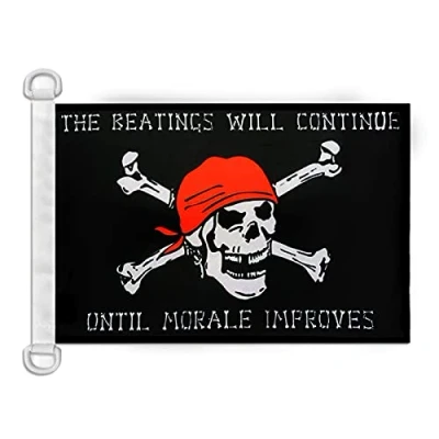 QUALITY MATERIAL: Made of 100% Knitted polyester 110g fabric, the finish of this Pirate Morale nautical flag is made with multiple reinforcement seams. Satisfaction guaranteed ULTRA RESISTANT: For outdoor or nautical use, this colorful skull Pirates flag is resistant to wind, water, heat and abrasion. Choose a durable flag EASY TO ATTACH: Our Pirate Morale flag is easily attached thanks to two plastic rings integrated on the reinforcement band. Many hanging possibilities are available to you WEAR YOUR COLORS PROUDLY: The 18 x 12 Inches Flag of Pirate Morale is a key element in the celebration of cultural and sporting events YOUR FLAGS REFERENCE: AZ FLAG is a brand specialized from 2009 in the production and distribution of flags from all over the world. Choose a brand that stands for quality