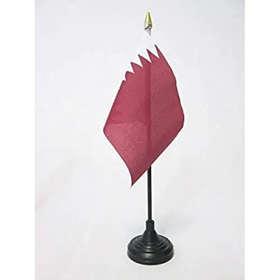 AZ Flag Qatar Table 4'' x 6'' Qatari Mini Desk 100% Polyester 15 10 cm Office with 10'' Pole Golden Spear
