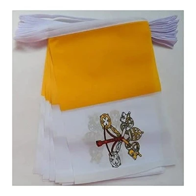 QUALITY MATERIAL: The laser cut edges of this Vatican City pennant garland allow a clean and precise finish and avoid fraying of the fabric. You can count on a quality decoration. ULTRA RESISTANT: For indoor and occasional outdoor use, this colorful Vatican mini flag garland is resistant to light wind, water, heat and abrasion. Your celebration companion for a long time! EASY TO HANG: Designed to hang on walls or other installations, the flag garland can be nailed, tied or attached with a tack. So many simple choices are available to you. A HIGHLY PRIDEFUL DECORATION: Our product is an ideal accessory to decorate your spaces according to your desires. Wall decoration or garden decoration, you choose what suits you. YOUR FLAGS REFERENCE: AZ FLAG is a brand specialized from 2009 in the production and distribution of flags from all over the world. Choose a brand that stands for quality