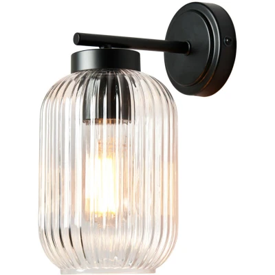 General description Add a touch of style to the exterior of your home with the Azalea Ribbed Glass Outdoor Wall Light. Crafted with a durable black metal frame and a beautifully ribbed clear glass shade, this outdoor wall lamp is designed to enhance your home's curb appeal while providing reliable illumination, ideal for lighting up a garden path, framing your front door, or creating a cozy patio atmosphere. Technical specifications Product Type: Wall Light Bulbs Required: 1 (Not Included) Bulb Type: E27 Edison Screw Max Bulb Wattage: 10 Watt Max Bulb Voltage: 240 Volt Light Source: LED Height: 28.5 cm approx. Width: 14 cm approx. Projection: 20 cm approx. Wall Cap Diameter: 10 cm approx. Shade Height: 14 cm approx. Shade Diameter: 20 cm approx. Material: Metal, Glass Colour: Black, Clear Weight: 0.78 kg IP Rating: IP23 Rated for safe use in bathrooms