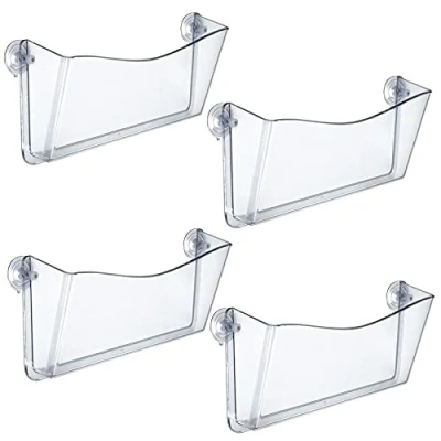 Azar Displays 250055 Clear Plastic Wall Mount File Holder with Suction Cups, 4 Pack