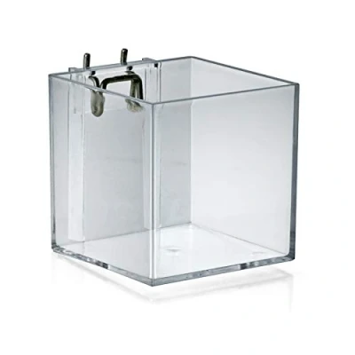 For use with Pegboard, Slatwall or counte. Includes one metal U-hook Color & Material: Clear Acrylic Dimension: 4"W x 4"D x 4"H Sold in Pack of 4, Manufacturer: Azar Displays