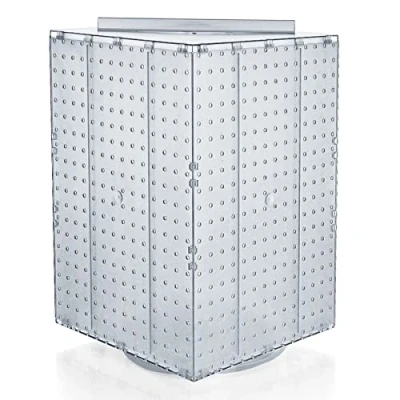 DIMENSIONS - Azars 4-sided interlocking rotating rack pegboard tower measures 14 inch W x 14 inch D x 20 inch H. Assembled height is 21 inch. The product display stands on revolving base that is 12-inch diameter EASY ASSEMBLY - This tabletop display stand is easy to assemble with no tools required. Simply snap the display turner into place and add your pegboard hooks and products. With its revolving base, this spinning display stand offers easy customer accessibility. GREAT VISIBILITY - Our durable easy to assemble retail display stands for products rotate a full 360 degrees and feature 4 sides for a high visibility display. All of our pegboard products are manufactured in the USA STRONG & DURABLE - Azar high-impact injection-molded styrene table top display stand is strong and durable. The turning display stand is easy to clean and will look great for many years to come International products have separate terms, are sold from abroad and may differ from local products, including fit, age ratings, and language of product, labeling or instructions., Weight: 12.13 Pounds, Manufacturer: Azar Displays