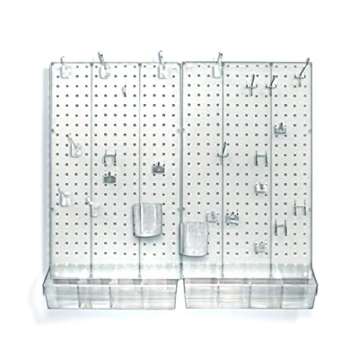 Azar Displays 900945 CLR The DIY Multi purpose 70 piece Pegboard Wall Organizer Kit with Two Panels and Accessory Assortment, Panel Sizes: 13.5 W x 22 H each, Clear Frosted