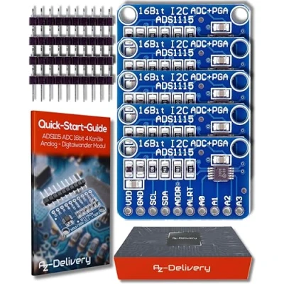 AZDelivery 5x ADS1115 ADC Analog to Digital Converter 16bit 4 Channel Module compatible with Arduino and Raspberry Pi including E Book!