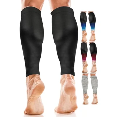 TRUE GRADUATED COMPRESSION CALF SLEEVES - provide calf support, increase oxygen flow & improve blood circulation for men and women, running OPTIMISED TWILL DESIGN FOR SHIN SPLINT SUPPORT - absorbs impacts, protects from cramps & injuries, reduces leg swelling & fatigue DOUBLE-STITCHED SEAMS - lightweight, anti-odour, moisture-wicking & breathable fabric (65% nylon, 20% polyester, 15% elastane) can endure multiple washing cycles LEG SLEEVES FOR GIFTING & SPORTS - these footless compression socks alleviate shin pain, speed up muscle recovery & keep your legs warm, dry & healthy SUPERIOR PRODUCT & SERVICE - We cut no corners in our product and will cut no corners in providing top-notch service to you