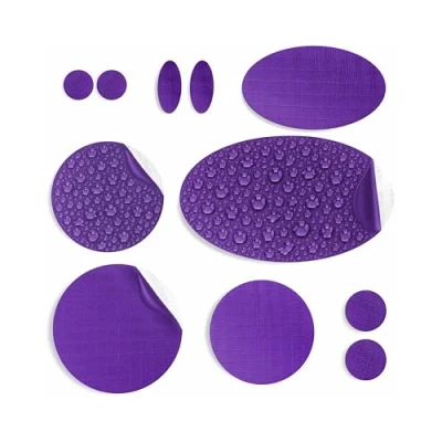 aZengear Repair Patches for Down Jackets, Puffer Coats, Waterproof, Self Adhesive, Pre Cut, Tear Cold Heat Resistant Nylon Polyester Fabric, Fix Air Mattress, Inflatables, Tents (11 Pcs, Purple)