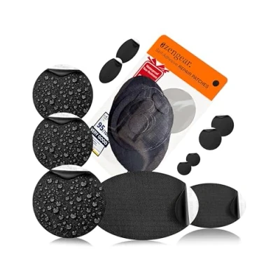 INSTANT DIY REPAIRS – Fix rips, holes, and tears in seconds! Just peel and stick the waterproof patch to your down jacket, puffer coat, ski wear, tent, sleeping bag, furniture upholstery, backpack, or shoes - no sewing or ironing needed. PRE-CUT PATCHES IN VARIOUS SHAPES – Each kit includes either a pack of 2 rectangular patches (6x20cm (2.4x7.9in)) or 11 self-adhesive nylon polyester patches: 1 large oval (80 x 48 mm), 1 medium oval (50 x 30 mm), 2 mini ovals (20 x 10 mm), 1 large circle (50 mm), 2 medium circles (40 mm), 2 small circles (15 mm), and 2 micro circles (10 mm). Perfect for targeted repairs on different gear and fabric types. TOUGH, WEATHERPROOF MATERIAL – Made from ripstop polyester, these patches are waterproof, tear-resistant, heat-resistant, and sub-zero temperature ready. Built to handle the elements - ideal for outdoor gear, PVC fabric, ski clothes, snowsuits, umbrellas, gloves, and more. EASY TO APPLY, STRONG BOND – Clean the damaged area, flatten any loose threads or feathers, select the right patch, peel and stick. That’s it! The ultra-sticky backing ensures long-lasting adhesion on a variety of fabrics and materials. QUALITY YOU CAN COUNT ON – At aZengear, we’re committed to delivering top-tier products and outstanding customer service. Your satisfaction is our priority - every time.