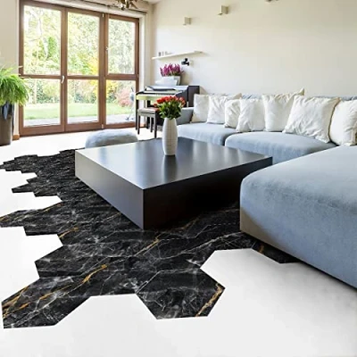 Azulejos Hexagonal Adhesive Laminated Non Slip Marble Cracked Glass Tile Stickers 20 x 18 cm Pack of 10