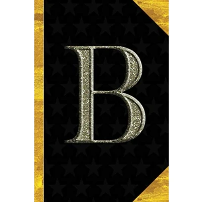 B: Black with Gold Classic Vintage theme Personalized College Lined Notebook Journal Diary & Note Taking Initial Monogram Glitters Letter Star ... Travel Size Gift for Friends Coworkers