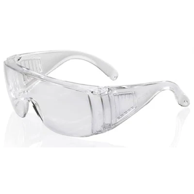 Wraparound clear visitors spectacle. Polycarbonate lens. Ventilated side arms. Low impact Width 157mm. Conform to EN166: Optical Class:1 F - (Low impact energy) 2-1.2 - UV Filter