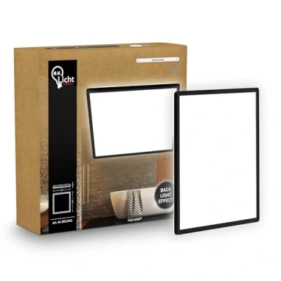 LED panel in black: This modern ceiling light features an integrated 16 W LED board with 1,900 lumens and provides even illumination at 4,000 K neutral white, making it suitable for a wide range of interior spaces Integrated backlight effect: The bath ceiling light combines direct ceiling illumination with a subtle backlight effect that visually enhances the room and creates a pleasant, evenly distributed light Splash-proof design: With IP44 protection, this wet room light is ideal for bathrooms or guest toilets and delivers reliable lighting even in environments with increased humidity Versatile use: The understated ceiling light can also be easily integrated into living or working areas, offering neutral white light for functional everyday lighting as a kitchen light or ceiling light for living room spaces Slim design: With compact dimensions of 240 x 240 x 30 mm, the light is well suited to rooms with low ceilings and blends discreetly into the space without appearing obtrusive