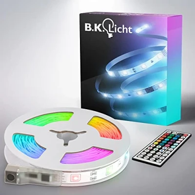 B.K.Licht USB LED Strip 5 m with Remote Control, Colourful RGB Light, Dimmable, Strip, Room Decoration, Gaming Light 500 x 0.2 1 cm, White