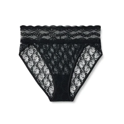 Hi waisted Elastic trim at legs Wide stretch lace waistband All lace body Percent cotton gusset