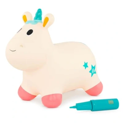 B. toys BX4527Z Boing Pixie Ride On Unicorn Bouncer Bouncy Animal Toy Inflatable Hopper for Toddlers Air Pump Included, 18 Months +