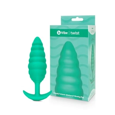 B-vibe twist green Insert able size: 14.5 cm/ 5.7 in x 4.4 cm/ 1.73 in The twist texture plug is your escort to advanced anal paradise Bold with delicate ripples of varying sizes, this large vibrating butt plug offers that sensual feeling of fullness that anal lovers crave Tapered for comfortable insertion and made from body-safe silicone, the twist texture plug is the ultimate toy for seasoned players who have tried everything