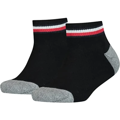 B084QZ8F4C Tommy Hilfiger Men's Th Kids Iconic Sports Quarter 2p Socks, Black, 5.5 8.5 UK