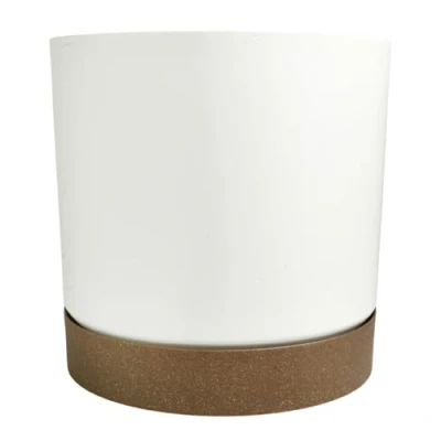 B2C Flower Pot Planter with Saucer Two Tone Matt Modern Decor Plastic Cylindrical Drainage Holes Lightweight & Weather Resistant Indoor Outdoor (White, 8L (D239mm x H231mm))