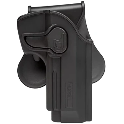 Made of durable law enforcement grade black polymer Designed for use with WE pistols Perfect fit holsters Rotating belt holster that fits WE, TM and many others Compatible with all replicas with or without rail