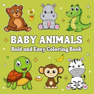 Baby Animals Coloring Book for Adults and Kids, Bold Easy, Simple Big Designs Relaxation