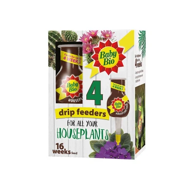 Baby Bio Drip Feeders 4pk provide a hassle-free way to nourish indoor houseplants, delivering balanced nutrients automatically for up to four weeks per feeder; simply cut the tip and insert into the soil for vibrant, healthy growth. Each pack contains four 40ml ready-to-use drip feeders.