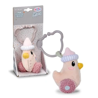 BABY born for babies Plush bottle 18cm, Berta design with clip, rattle & crackling paper, washable