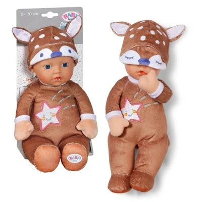 BABY born for babies Sleepy Deer, Soft 30cm Fabric Doll with Deer design hat and Integrated Rattle Newborn Babies, 836552 Zapf Creation
