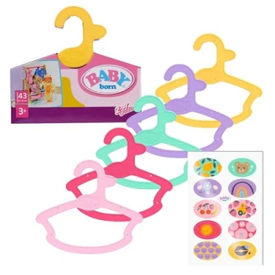 5 PACK - The BABY born doll hangers come in a practical 5-pack - so little doll parents always have a hanger ready. FOR ALL FAVOURITE DOLLS - All 43cm doll clothes fit on the hangers SUSTAINABILITY - These stylish clothes hangers are made from recycled material. PREMIUM ACCESSORY - The BABY born doll clothes hangers in a 5-pack are the ideal addition for extended, varied & long-lasting fun. QUALITY SINCE 1991 - BABY born stands for long-lasting play fun & proven quality that parents have trusted for generations., Manufacturer: Zapf Creation