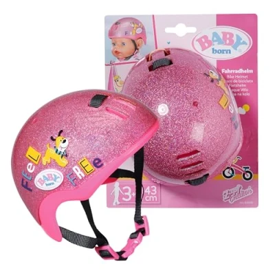 SAFETY FIRST - Before BABY born speeds off, the helmet is put on of course - because safety always stands in first place. EYES OPEN - The glittering & pink bicycle helmet attracts all glances with its loving design - a stylish highlight in the world of BABY born. FITS NOT ONLY BABY BORN - The bicycle helmet fits all BABY born favourite dolls of size 43cm without problems. PREMIUM ACCESSORY - The BABY born Bicycle Helmet is the ideal addition for an extended, varied & long-lasting play pleasure. QUALITY SINCE 1991 - BABY born stands for long-lasting play fun & proven quality, which parents have trusted for generations., Manufacturer: Zapf Creation