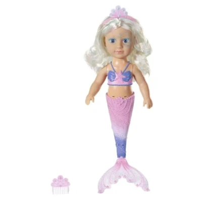LITTLE SISTER MERMAID - Fantasy doll for magical play. You can style her hair then put her in warm water, and her turquoise and purple tail moves like a mermaid and changes colour. Ideal for bathtimes, paddling in pools or even going on holiday FOR SMALL HANDS - Made in an easy-to-hold style that even the smallest children can play with INCLUDES - Mermaid doll, tiara, and comb ENCOURAGES IMAGINATION - Role play with BABY born boosts the imagination and has been proven to support the development of social skills, and values such as responsibility, communication, and empathy AGES 3 PLUS - For children 3 years and older; requires 3 x AAA batteries, Manufacturer: Zapf Creation