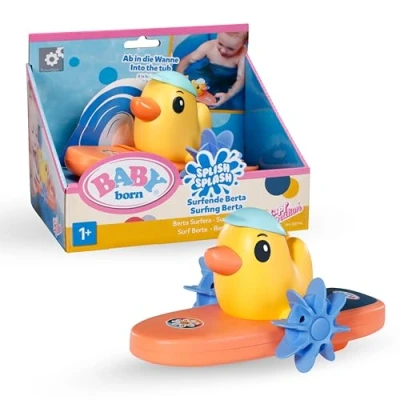 SWIMS WITHOUT BATTERIES - Duck Berta is a bath toy that works completely without batteries. Her surfboard drives effortlessly over the water thanks to wind-up mechanism! SURFING MADE EASY - Berta's stylish surfboard becomes a highlight thanks to the simple functioning: Wind up at the wheels, place on water & off it goes. EASY DRYING - Even after hours of bathing fun Berta can be dried quickly & loosely. Simply turn upside down & thus let the water run off quickly. FOR CHILDREN FROM 1 YEAR - Berta is ideally suited as a high-quality bath toy for children from 1 year. She playfully promotes motor skills & stimulates creativity. QUALITY SINCE 1991 - BABY born stands for long-lasting play fun & proven quality, which parents have trusted for generations., Manufacturer: Zapf Creation GmbH