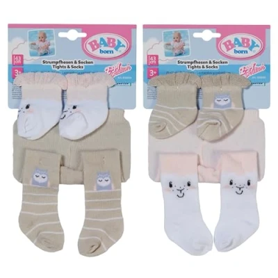 SUBTLE COLOURS – The softly coordinated tones can be combined with many outfits and add stylish variety to the doll’s wardrobe. IDEAL FOR ANY SEASON – The cosy tights and comfortable socks keep little doll feet warm – perfect for spring, autumn and winter. SOFT QUALITY – The pleasant material ensures a high level of comfort and is designed especially for delicate doll feet. GENTLE ELEGANCE – The pastel colours and classic look create a calm and charming style – perfect for imaginative doll play. DESIGN SELECTED AT RANDOM – As this is an assorted item, the design of the set (1 pair of socks & 1 pair of tights) cannot be chosen. QUALITY SINCE 1991 – BABY born stands for long-lasting play fun and trusted quality that parents have relied on for generations., Manufacturer: BABY born