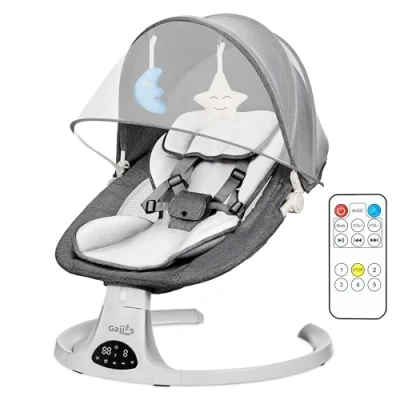 Baby Bouncer Swing Chair from Birth 5 Speed with Remote Control, 3 Stage Timer, Soft Padded Seat & 2 Plush Toys Newborn Infant Bouncer. (Grey)