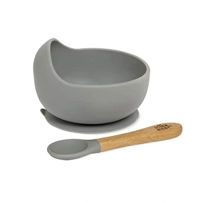 Baby Bowl with Suction Cup and Silicone Spoon in Pre Troum Grey