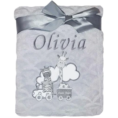 Baby Boy Girl Personalised Animal Blanket Embroidered Name Rabbit Owl (Grey Animals)