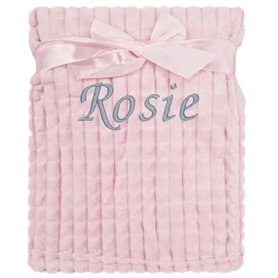 Baby Boy Girl Personalised Blanket Embroidered Name (Pink Squares)