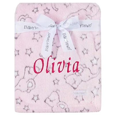 Baby Boy Girl Personalised Blanket Embroidered Name Various Designs Elephant (Pink Star Blanket)