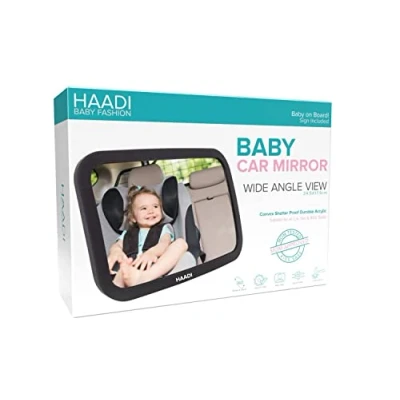 🔄 360 Degree Flexible Adjustability: Baby car seat mirror with ball joint flexibility you can adjust it to the perfect view in front of your child so that you can keep your eyes on your little one. the baby can see you too and will not be scared or nervous. 👀Wide Angle Convex Mirror - HAADI car baby mirror provides an extra wide-angle that gives you a beautiful view, making it easy to monitor your baby's safety whenever you drive. 🛠️EASY TO INSTALL: Our baby rear view mirror is easy to attach at any headrest with a firm grip. With a detachable design, you can remove and store it. Please tighten the strap to make sure the back seat mirror is not shaking. 👍PREMIUM QUALITY: Our brand ensures a 100 % quality guarantee. It is made of high-quality acrylic material which is safe and shatterproof. It prevents the car seat from scratching. so you can buy it without any fear. 🎚️ELASTIC AND ADJUSTABLE STRAP: Rear view mirror for baby have dual straps are designed which adjust on any headrest, sturdy base slip won’t slip out of place. East fastening buckles & strap prevents the mirror from relocating and swinging around.