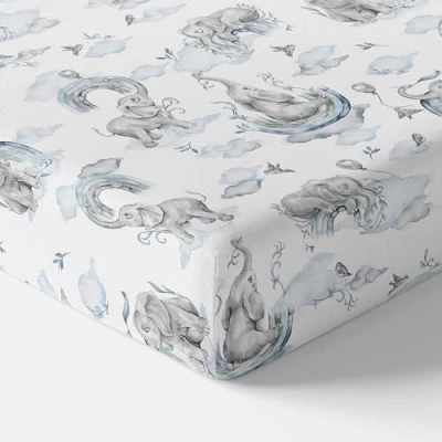 Baby Comfort Nursery 100% Cotton Fitted Sheet fits 140x70 cm Cot Bed Mattress (Blue Elephants)