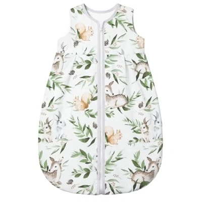 Baby Comfort Sleeping Bag 2.5 Tog Sleep Sack 100% Cotton, Summer Wearable Blanket (Forest, 92 98)