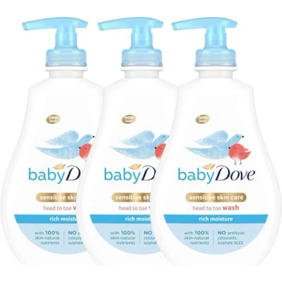 GENTLE AND NOURISHING - Baby Dove Rich Moisture Head to Toe Wash is designed for the delicate skin and hair of newborns. This hypoallergenic gentle formula offers a soothing, nourishing bath experience, ideal for daily use. It keeps baby's skin and hair soft whilst providing a comforting and calming cleanse. SKIN AND HAIR HYDRATION - This baby wash is formulated with 100% skin-natural nutrients to maintain the natural moisture of your baby's delicate skin and hair. It cleanses whilst also providing the necessary hydration. Our caring baby bath formula, created without parabens, phthalates, SLS, or SLES, ensures that our nutrients are identical to those naturally found in skin. TEAR-FREE BATHING - Understanding the sensitivity of baby's eyes, this wash is made with a tear-free formula, ensuring a joyful and comfortable bath time. Our gentle and safety-tested formula is dermatologically and paediatrically tested, making it gentle on the eyes and reducing the likelihood of tears. This makes bath time a pleasant experience for both baby and parent. DELICATE FRAGRANCE - Infused with a mild and delicate fragrance, this wash leaves baby smelling fresh and clean. The subtle scent is carefully chosen to be gentle and pleasing, adding to the comforting experience of bath time. PRODUCT DETAILS - Included are 3 bottles of Baby Dove Rich Moisture Head to Toe Wash, each containing 400ml. This wash is suitable for daily use on newborns and older, offering a balanced and gentle cleansing experience. Its planet-friendly packaging reflects a commitment to caring for today's world.