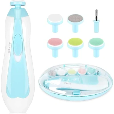 Baby Electric Nail File 8 in 1 Trimmer Clipper with 6 Grinding Heads and Light Care Kit for All Ages Pack of (Blue)