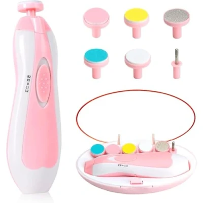 Baby Electric Nail File 8 in 1 Trimmer Clipper with 6 Grinding Heads and Light Care Kit for All Ages Pack of (Pink)