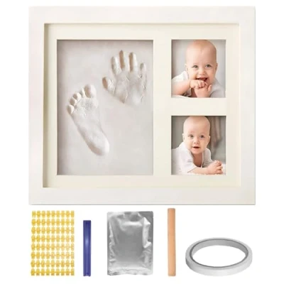 ✔️Complete Baby Photo Frame Set: Includes 1 frame, 1 clay, 72 letter molds, 1 rolling pin, and 1 double-sided tape. This baby handprint and footprint kit includes everything you need to preserve your baby's handprint and footprint, making it a thoughtful baby shower gift or a gift for new parents. ✔️Easy to Use: Simply knead the clay for five minutes until it becomes soft and smooth. Place it in the frame area and smooth it out using the provided wooden stick. Press your baby's tiny handprint and footprint into the clay and let dry. ✔️High-Quality and Safe Materials: This handprint and footprint set is made with safe and non-toxic clay and a wooden frame, ensuring it will be treasured for years. ✔️Unique Baby Keepsake: This newborn keepsake photo frame features your baby's handprint and footprint, displayed alongside a photo of your baby in a high-quality wood frame, making it a one-of-a-kind baby keepsake. The baby feet and handprint kit is an elegant and meaningful nursery decoration to cherish for a lifetime. ✔️Great Baby Shower Gifts: A newborn foot and hand print kit is a perfect gift for newborn showers and baths, capturing the good memories of your little one. This baby handprint keepsake kit has everything you need, no extra accessories required. Perfect for baby showers, registries, baby welcome parties, Christmas.
