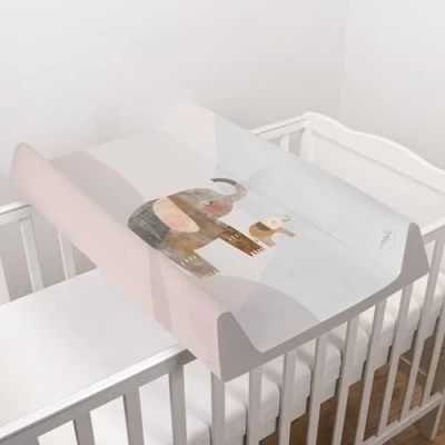 Baby Hard Base Changing Mat/Top Changer 80x50 cm fits 140x70 Cot Bed Unisex Wedge Anti Roll Nappy Newborn Waterproof Mat with Raised Edges (Elephant Family)